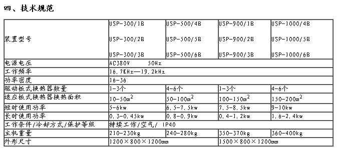 1.5針對板式換熱器存在的缺陷,我公司****研制了USP-B系列板式換熱器除垢裝置,該裝置通過超聲波除垢裝置去除換熱板上的硬垢,通過軟垢****裝置去除換熱板間的氧化物及泥沙等軟垢,徹底解決了板式換熱器的除垢難題。