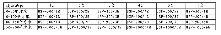 用戶使用單位可根據(jù)本單位在裝板式換熱器的數(shù)量,單臺板式換熱器的換熱面積,在根據(jù)下表,完成設(shè)備的選型。